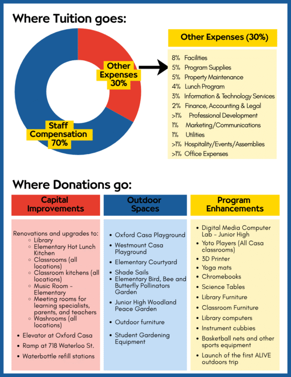 Starting in the 2027-2028 school year, for new students only, there will be a one-time Facilities Fee ($350) when enrolling in the school. This does not impact any current families this year, nor will it in future years unless a new sibling joins the school. This type of fee is very common for independent schools and, comparatively, ours is much lower than most, both across Montessori schools in Ontario ($500 to $5000) and other institutions, even here in London. For the 2026-2027 school year, the new one-time fee will only impact students/families who are brand new to the school.