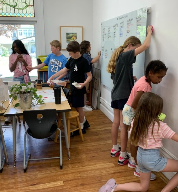 Practical Life Skills carry over into Upper Elementary — the classroom clean up is underway!