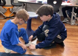 LE2 Y3 helping Y1 tie shoes