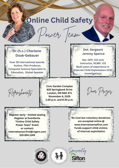Civic Garden Complex on Nov. 6 – 1:30-6:30pm. For more information, email internetsense.first@rogers.com.